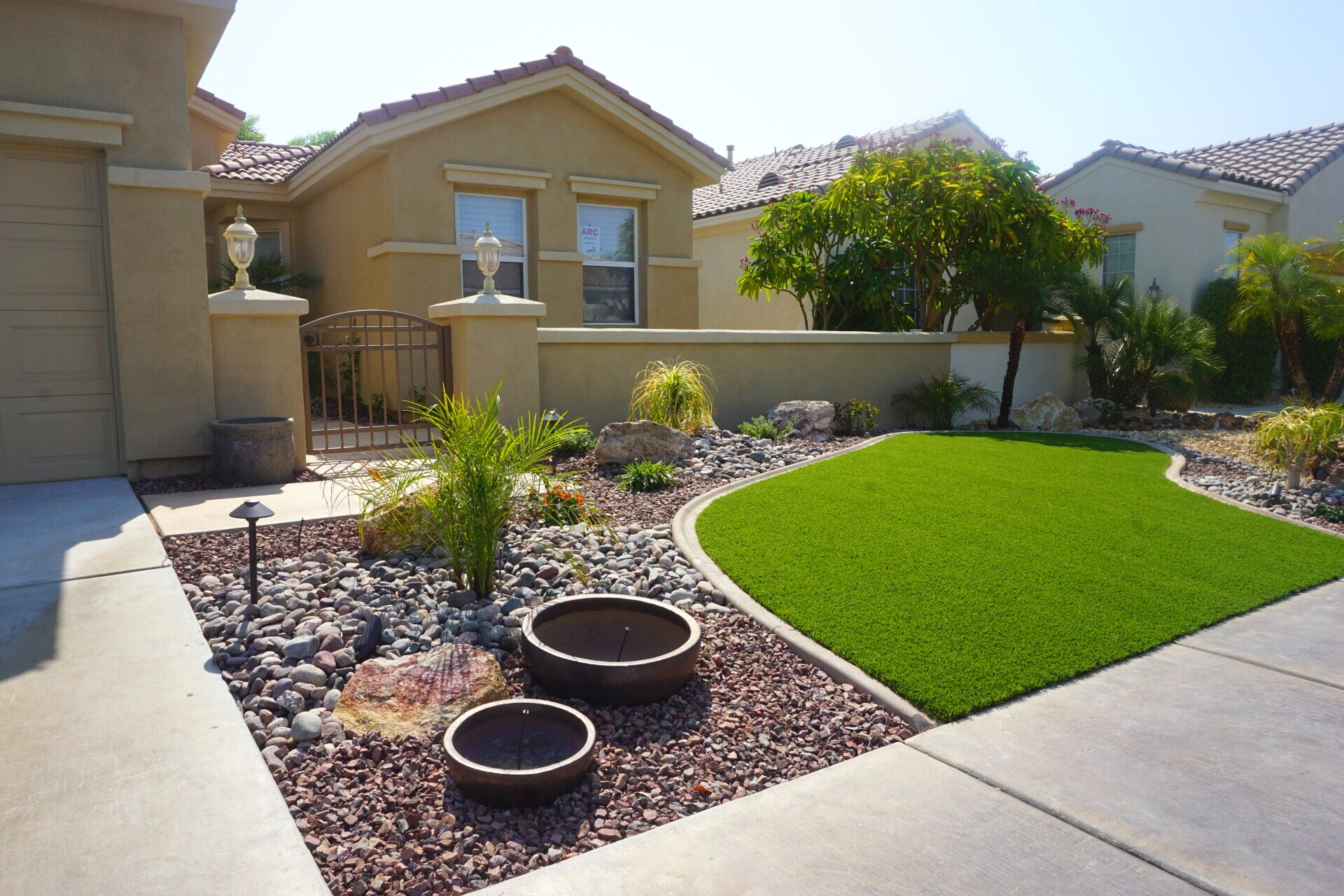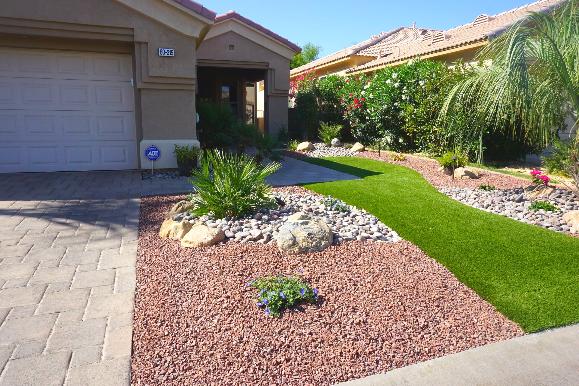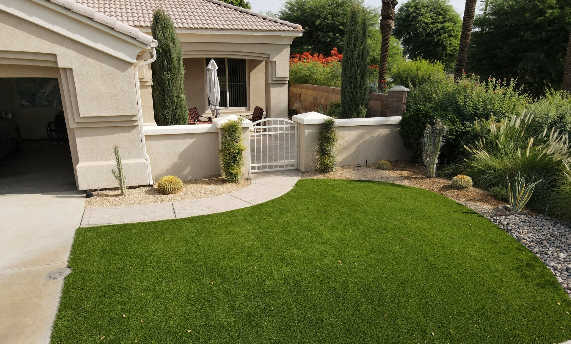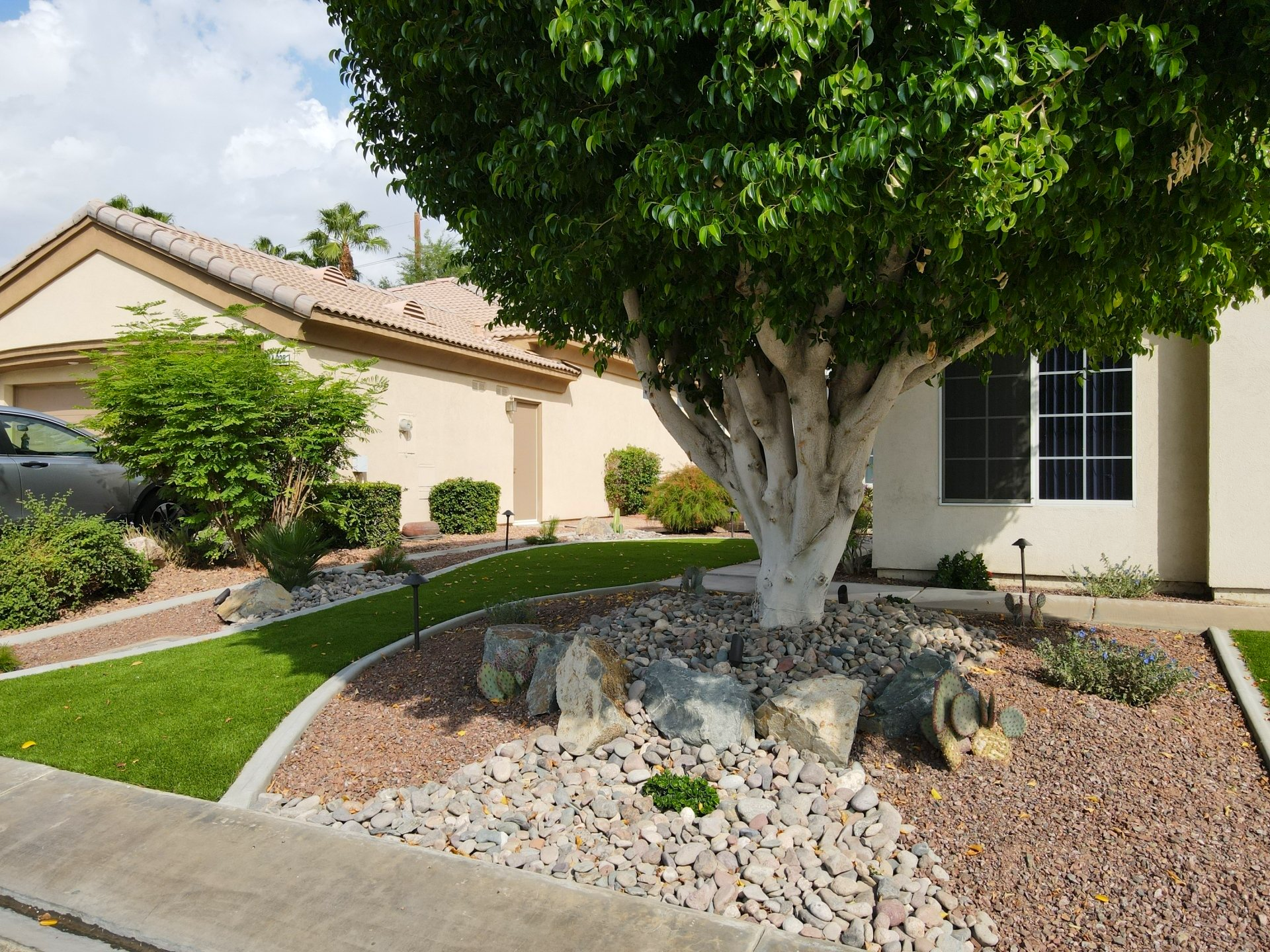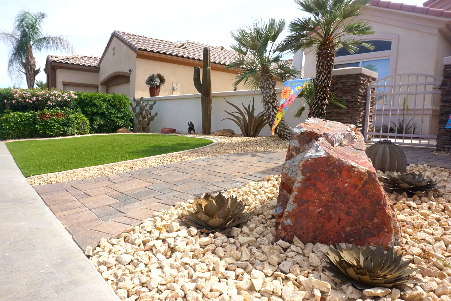 FrontYard Desertcape With Artificial Turf and pavers installation