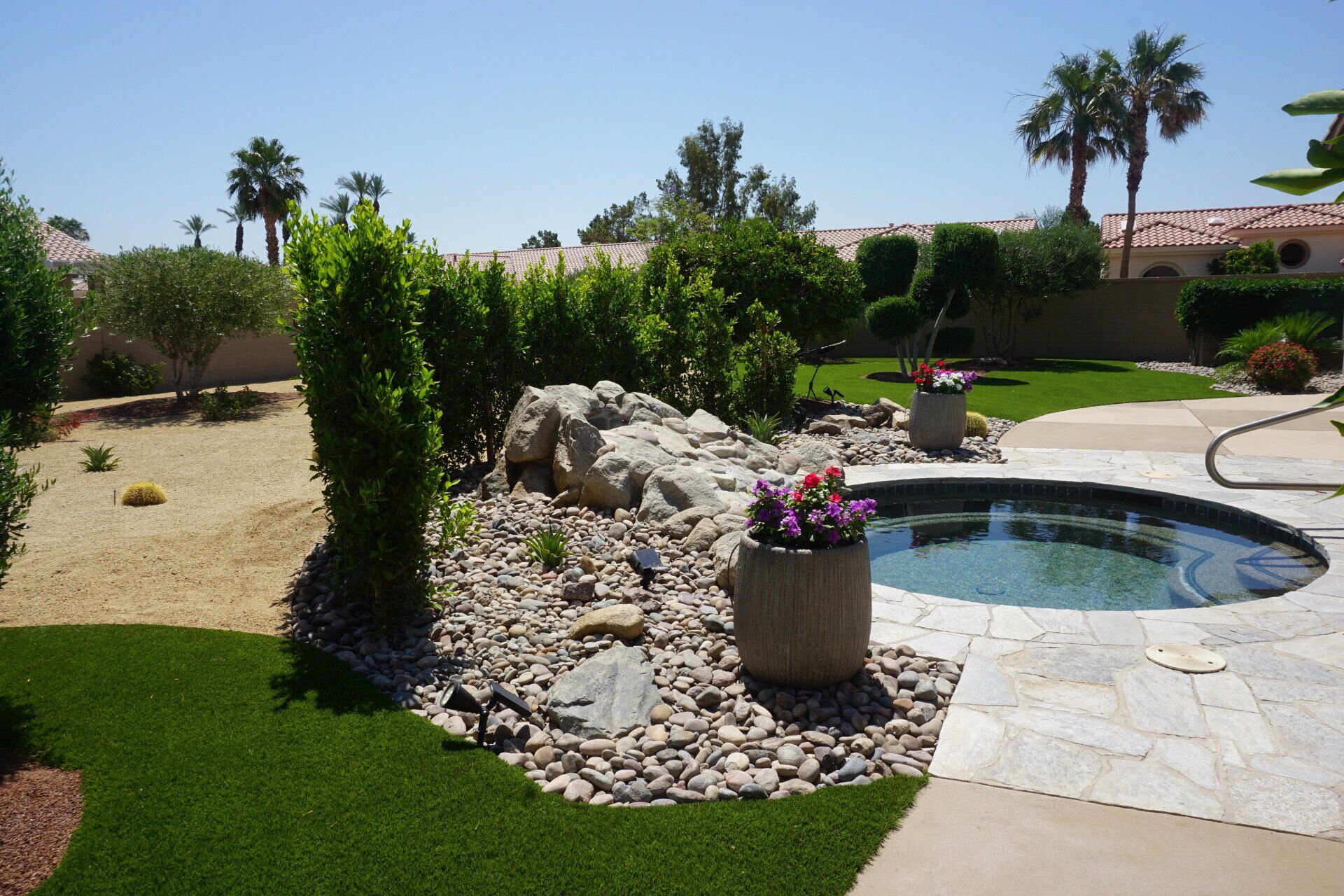 Front Yard Desertscape with Artifical Turf Installation