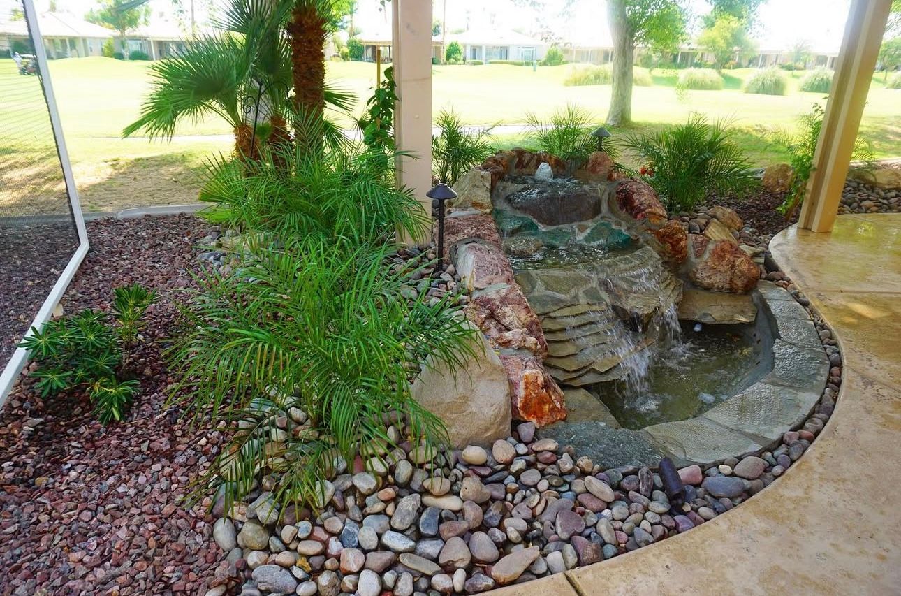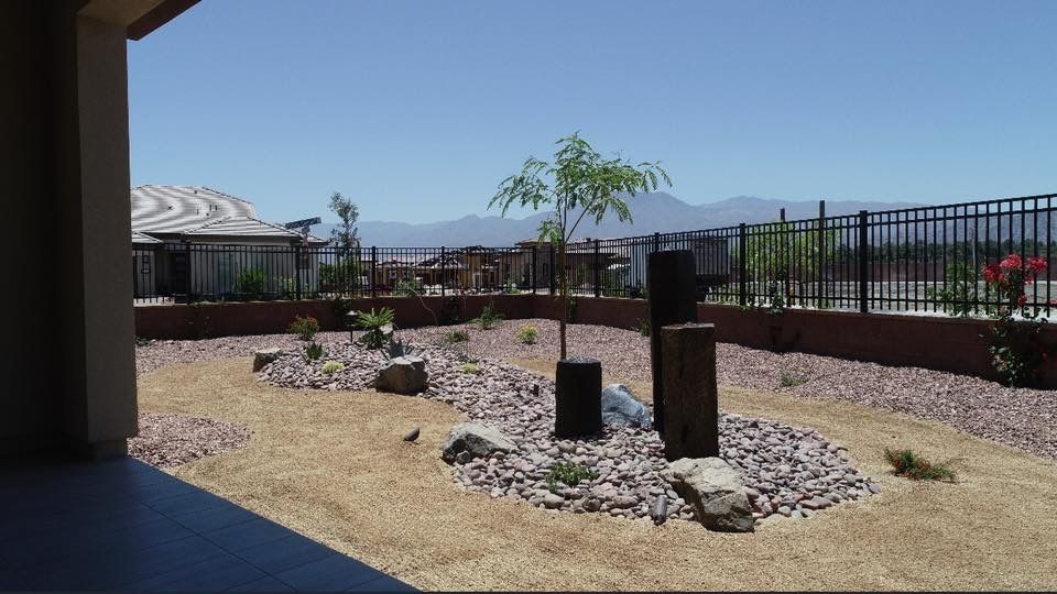 Desert landscape design features low-water, drought-tolerant plants such as cacti, succulents, and native shrubs, often complemented by rocks, gravel, and minimalist elements. It emphasizes sustainability, water conservation, and natural beauty suited to arid climates.